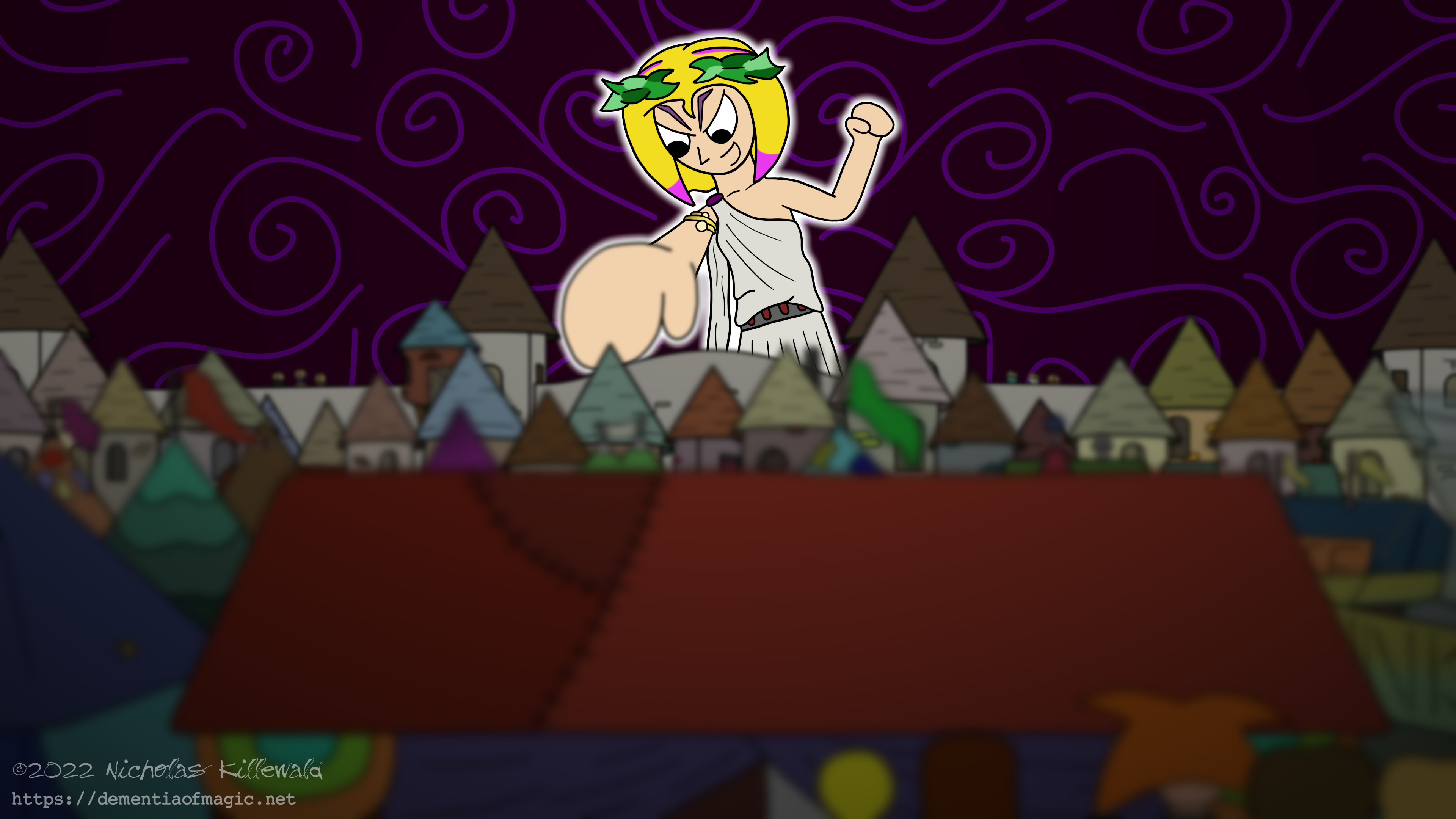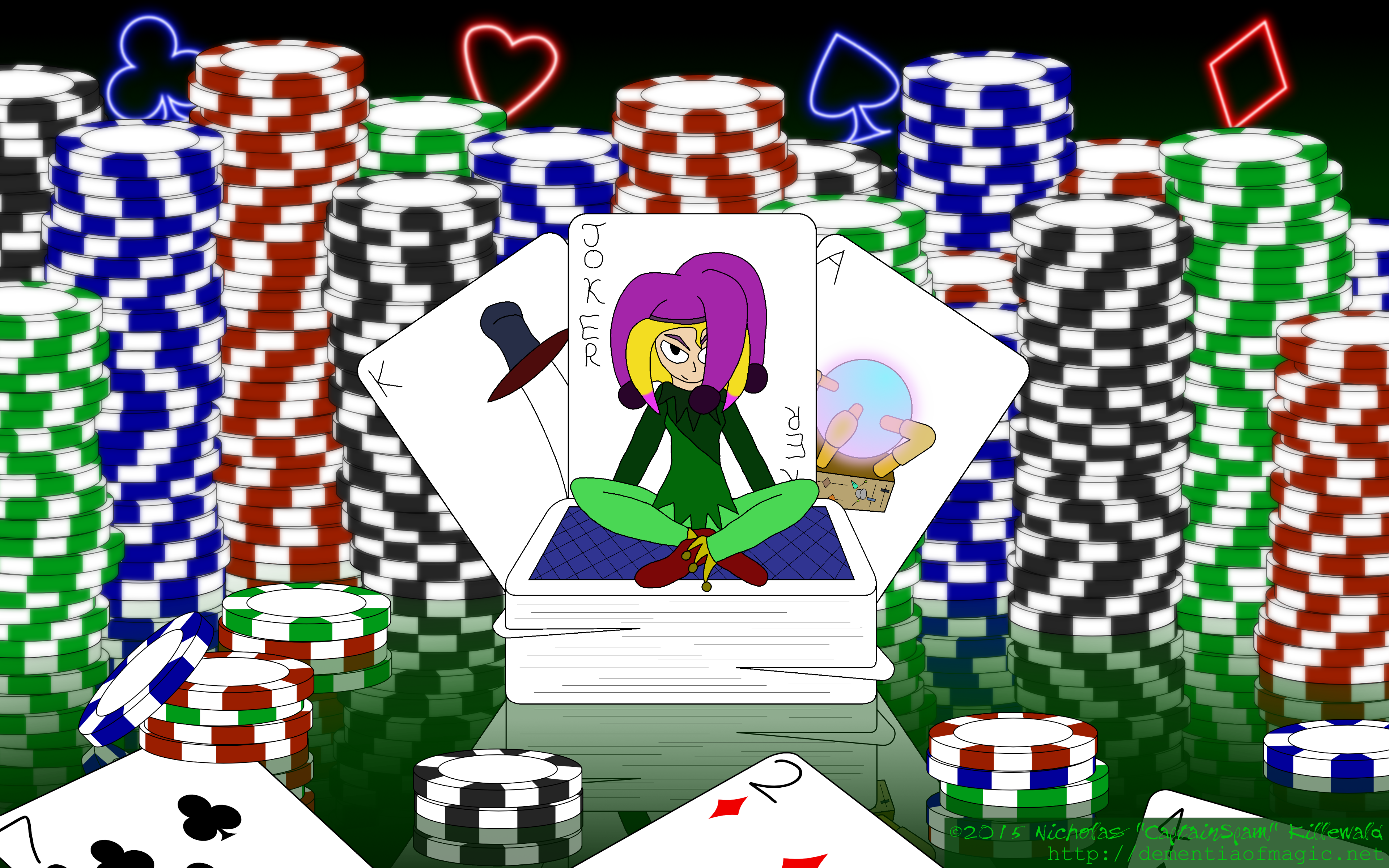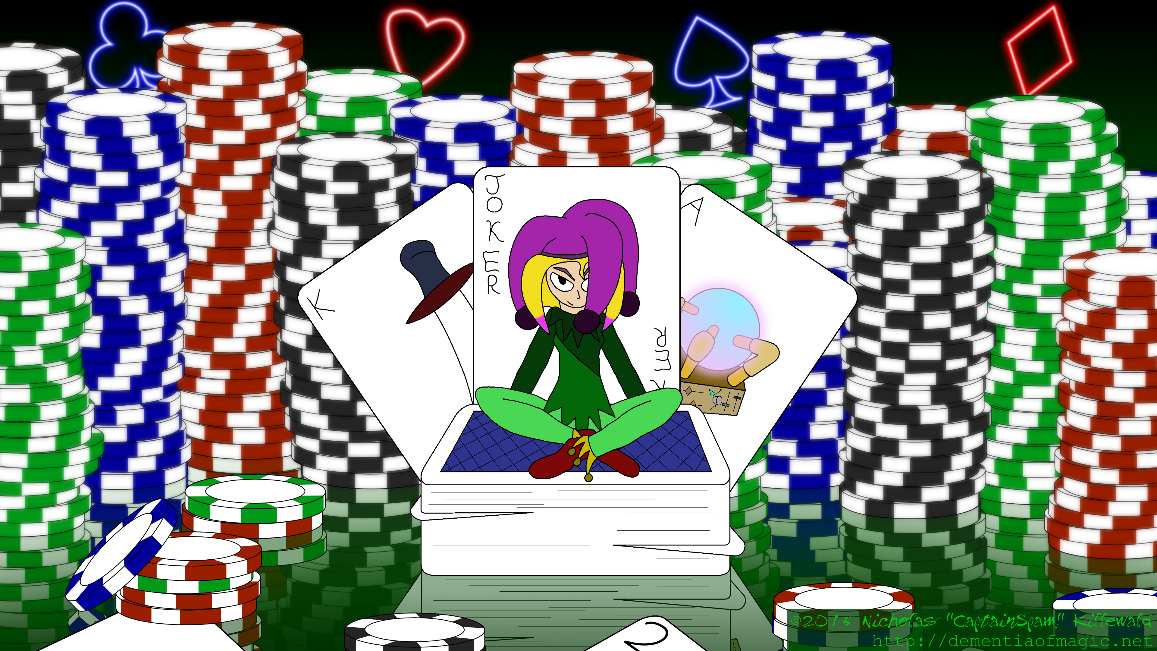 This one might look familiar if you bought the book. This wildly non-canon outfit for Stephanie appeared as a sketch somewhere in there for fun. And, despite the fact she wouldn't be caught dead in a jester's outfit again, I always told myself that I'd turn that sketch into a wallpaper at some point. Now, thanks to way too many vector objects making up those chip stacks, such a wallpaper exists!