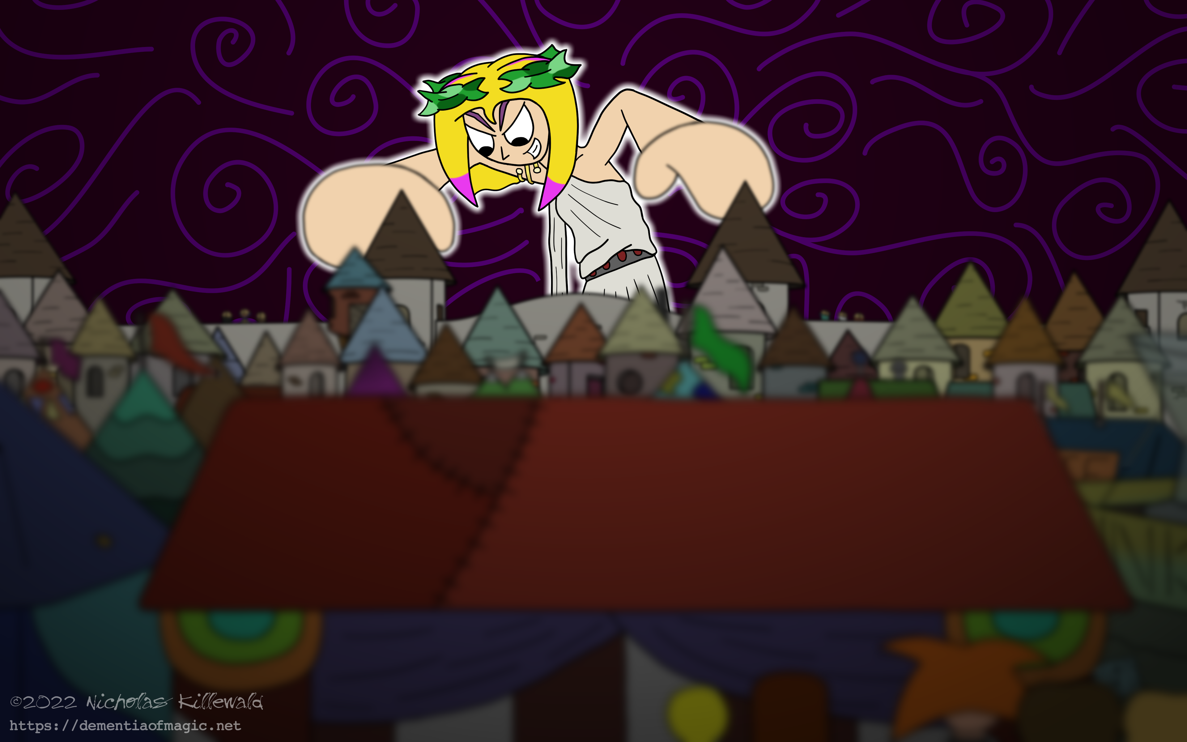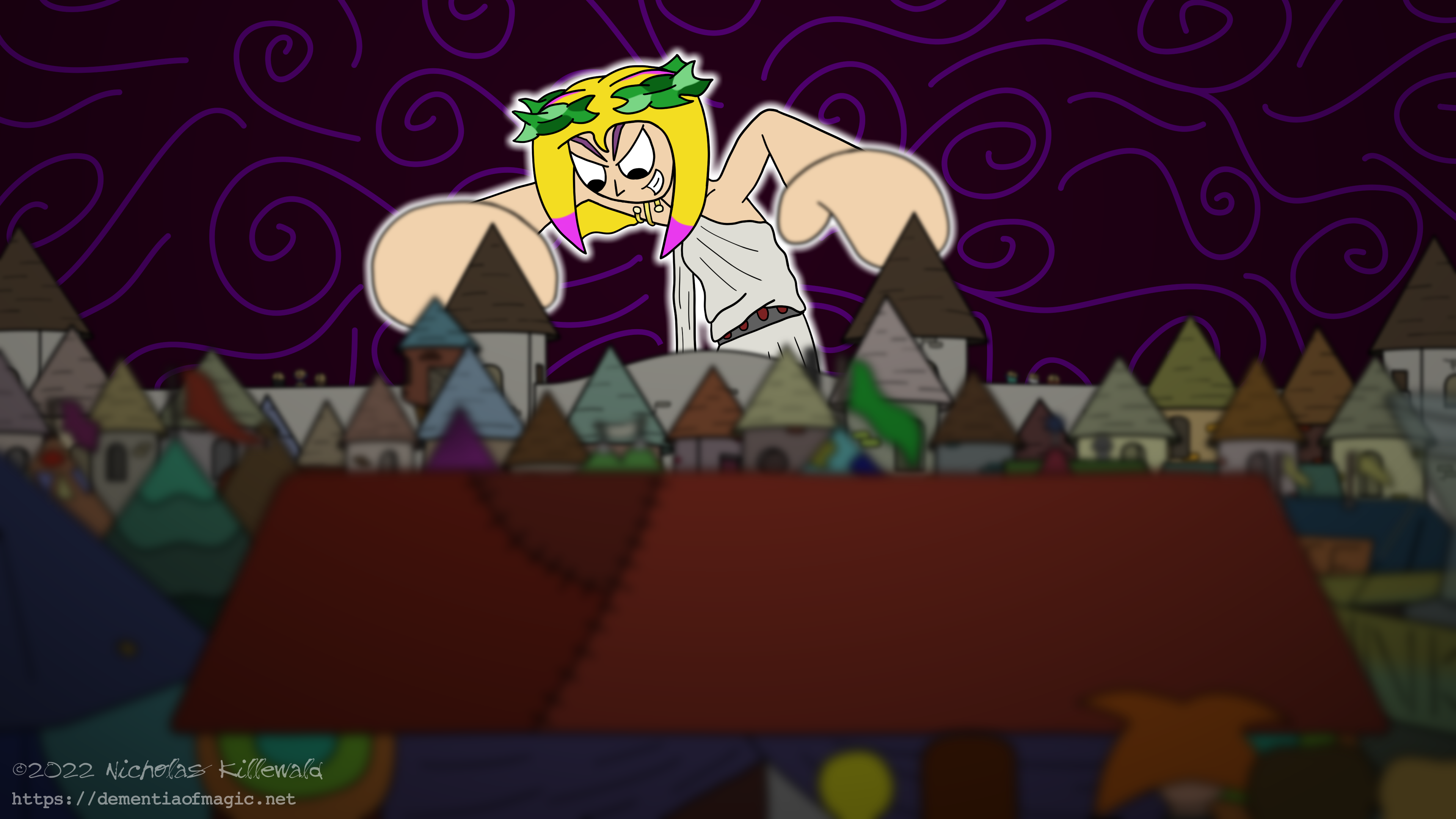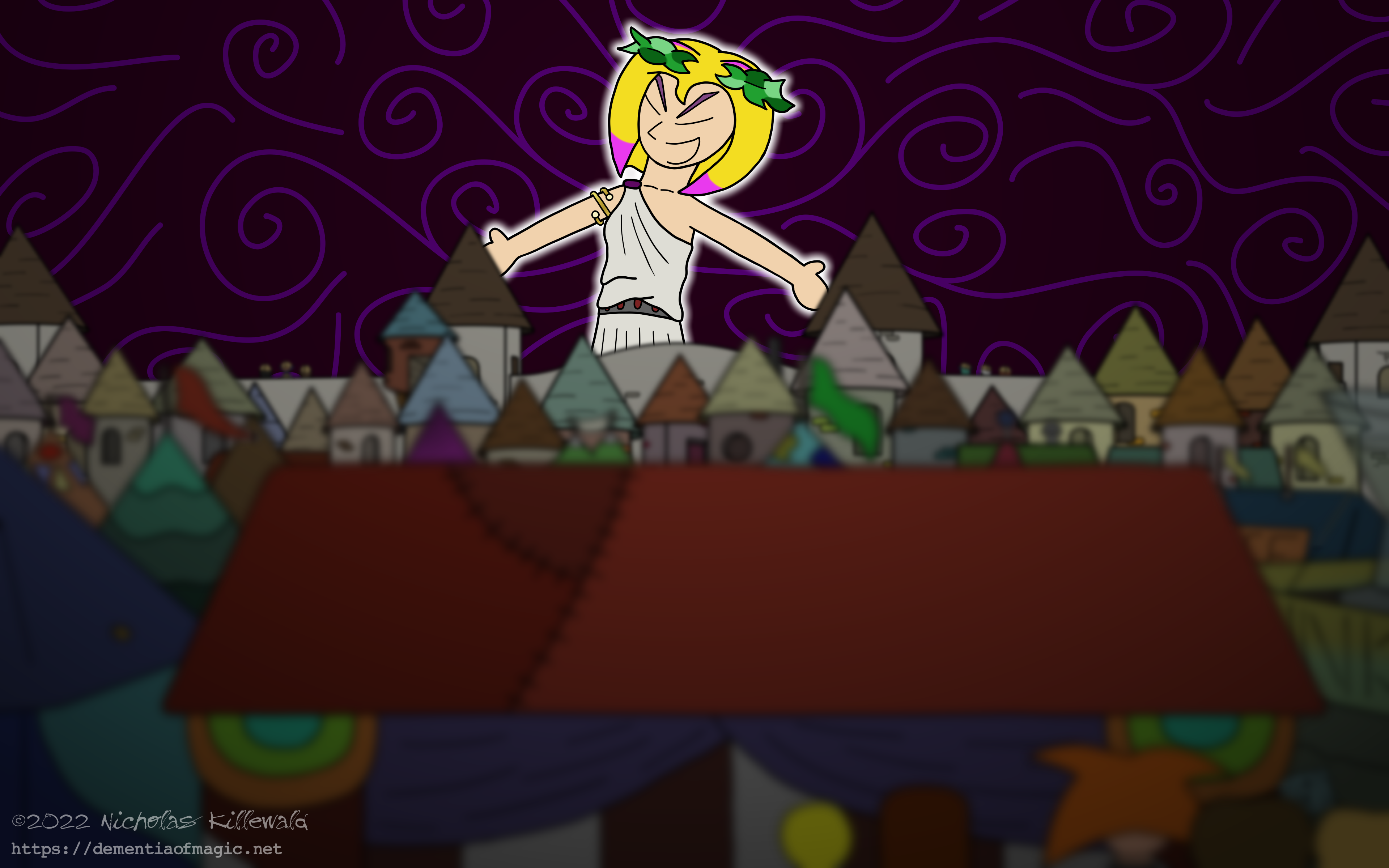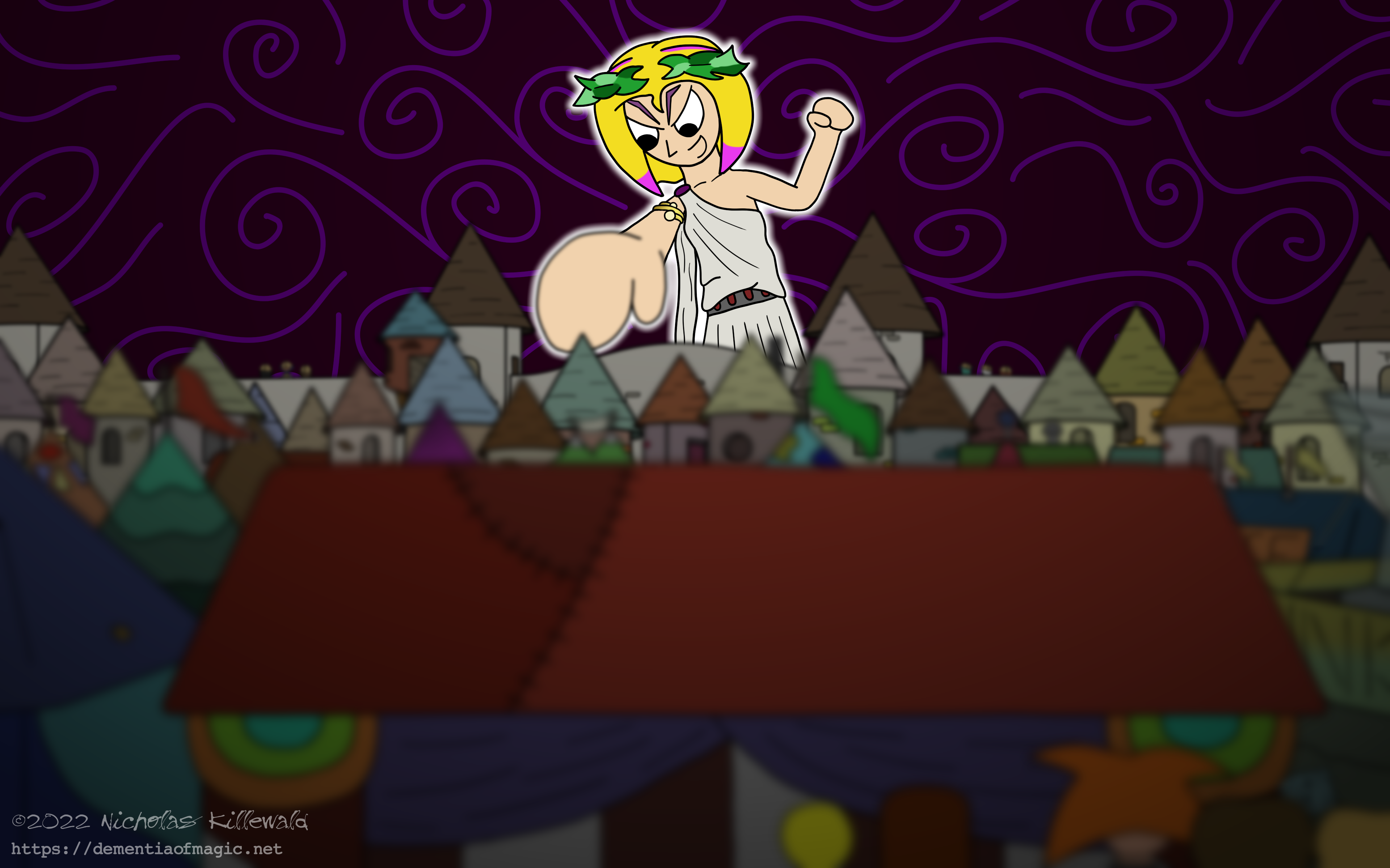 This one might look familiar if you bought the book. This wildly non-canon outfit for Stephanie appeared as a sketch somewhere in there for fun. And, despite the fact she wouldn't be caught dead in a jester's outfit again, I always told myself that I'd turn that sketch into a wallpaper at some point. Now, thanks to way too many vector objects making up those chip stacks, such a wallpaper exists!