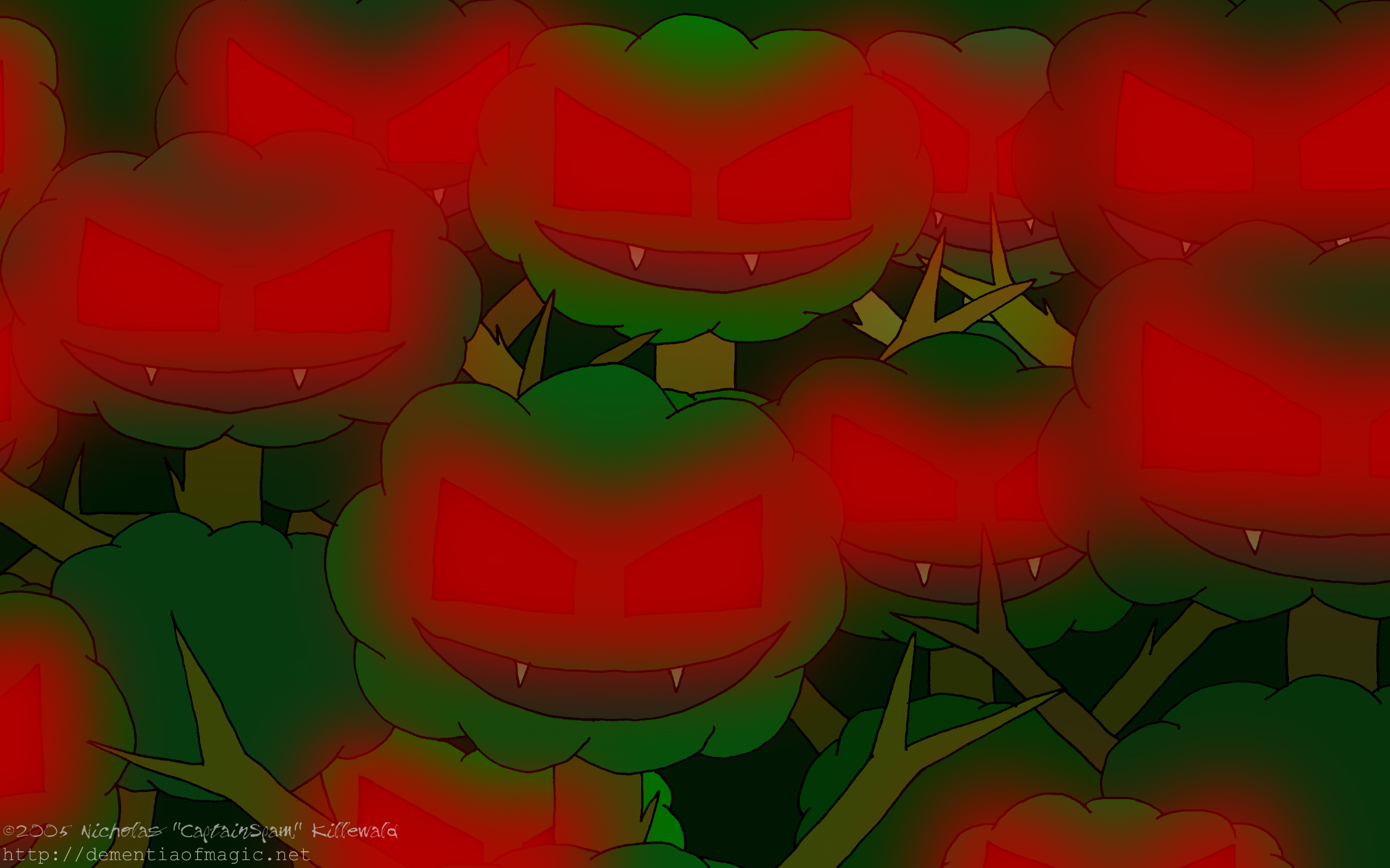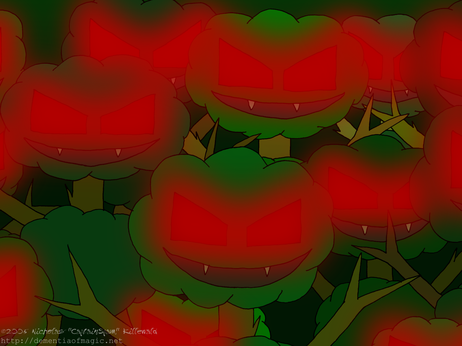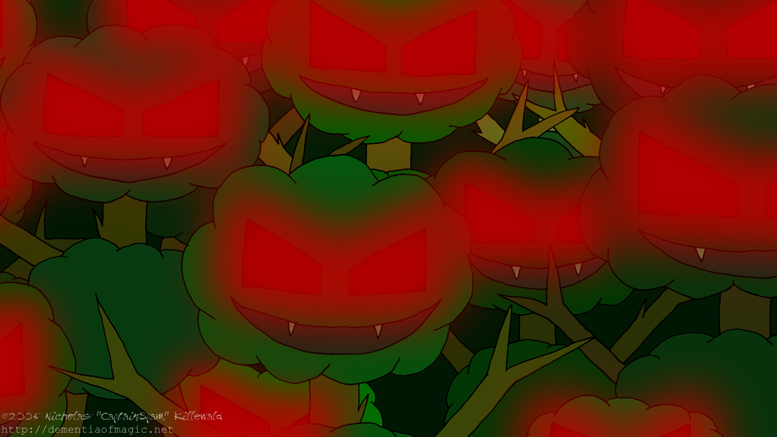 I was on a mission to get more wallpapers for everyone to enjoy. I figured, Spring was already hitting Michigan, so why not celebrate it with a bunch of violent impish bush-like creatures? Enjoy a swarm of Nyerts staring you down!