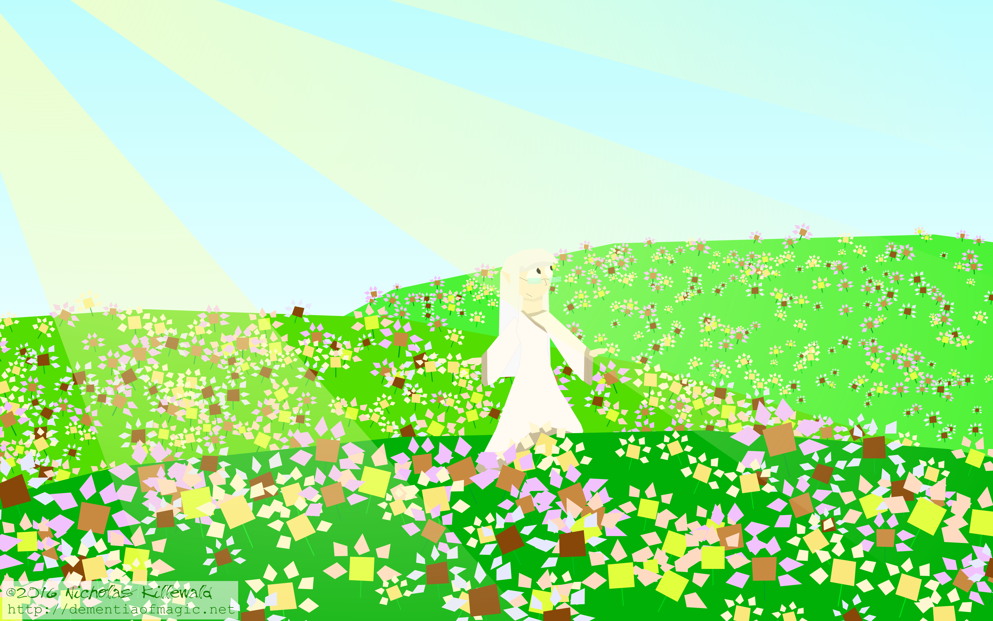 Finishing up the Vector Season Series, here's one for spring! Springtime! Complete with Phinn (I swear I couldn't come up with any other character better-suited for the job) cheerfully walking through a sunlit field of square vector flowers! All thanks to conspicuous use of the Spray Objects tool in Inkscape!